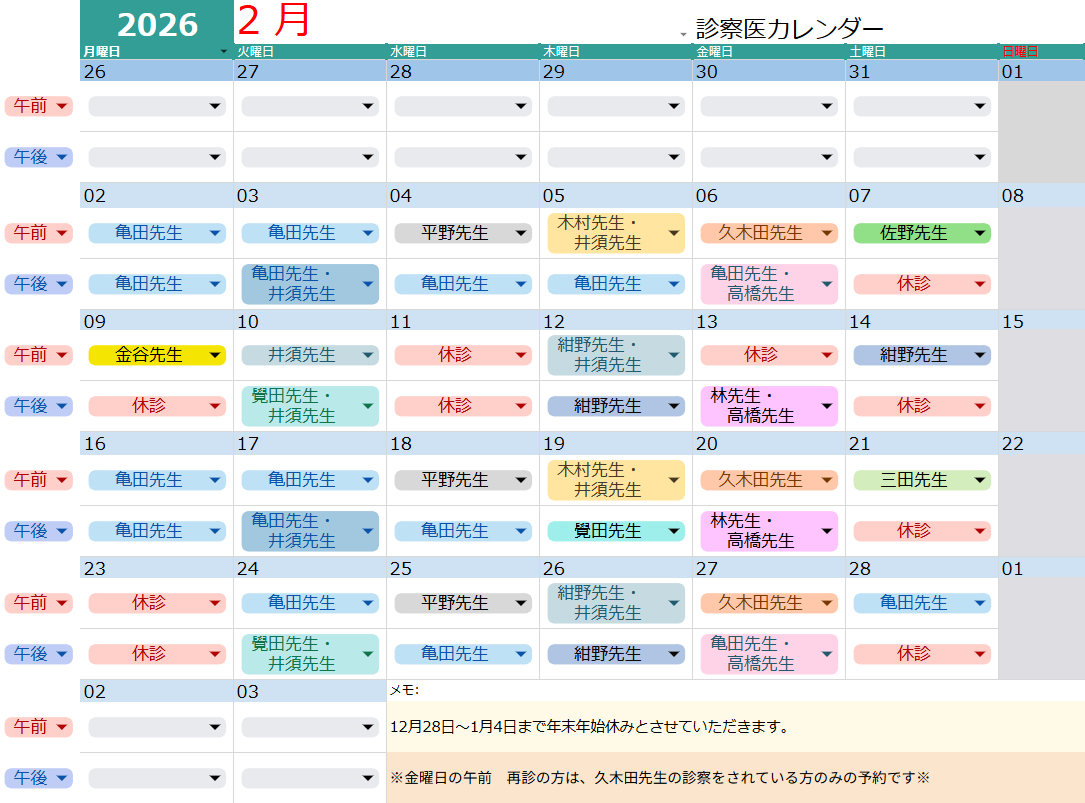 2月の診療医情報です。