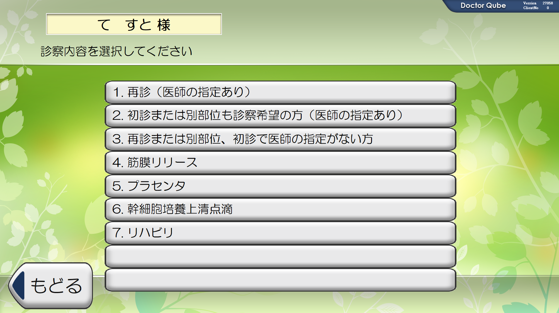 診察券をQRコードリーダーへかざしていただくと、これまでは「受付」のみのご案内でした。