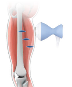 BTL社製の収束型(Focused)機器は拡散型(圧力波)では届きにくい、深部の腱や筋肉、骨の付着部に対して、エネルギーを一点に集中させて届けることが可能です。